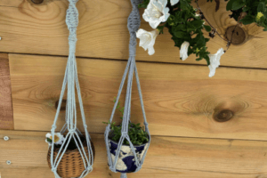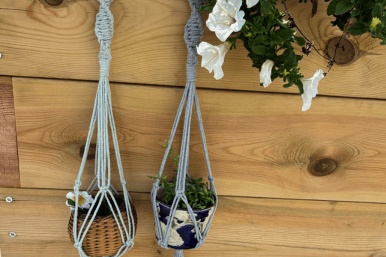 In this workshop we will be learning a few Macramé knots to create a stylish medium-sized plant hanger for indoor use. If there is time we will also create a miniature version with a faux plant, suitable as a car charm or window decoration.