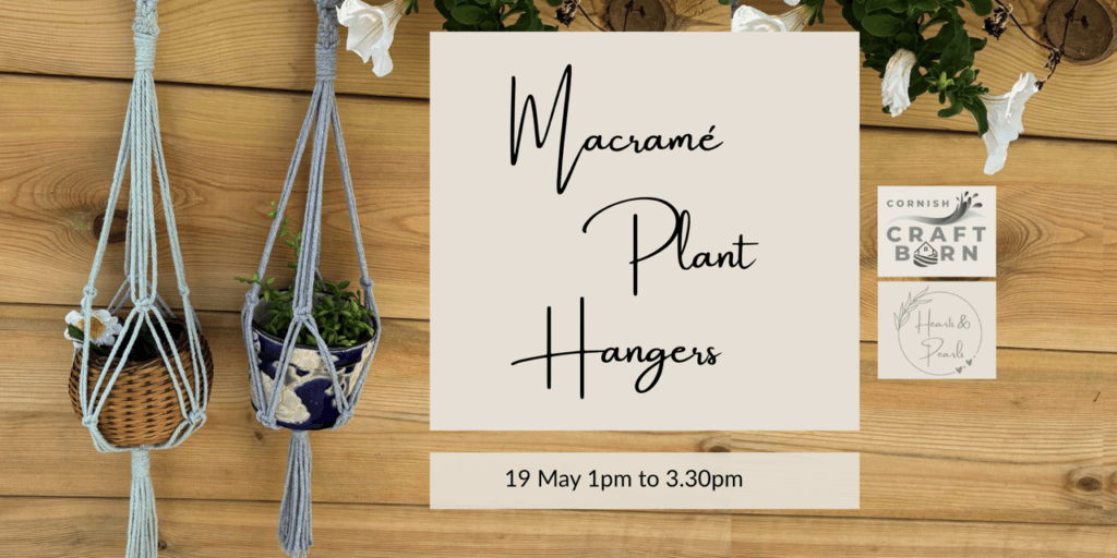 Lucy from Hearts and Pearls is a self-taught Macramé artist based in Falmouth. Grown from a hobby, her business specialises in propagating rare trailing semi-succulent plants, including the popular String of Hearts and Pearls, and through this, she first explored making decorative plant hangers from Macramé yarn. Having experimented with various projects over the years, she now runs Macramé workshops in the local area. She designs tutorials for others to learn the basics of this historic art form, some of which are available to purchase in the CCB gift shop.