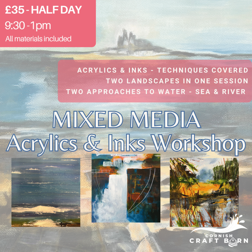 A half-day 10-1 workshop that focuses on mixed media skills for beginners. In this session, we focus on landscapes and explore the best methods for approaching them using a variety of media, including acrylics, inks, collage, wax, and watercolour, among others. The technique will be covered, along with some key tips to make progress quickly. However, excitingly, it will still be your style that shines through and makes your pieces unique. You will be busy with practical exercises from the start and are sure to have an enjoyable morning, becoming more confident as a mixed-media creative.